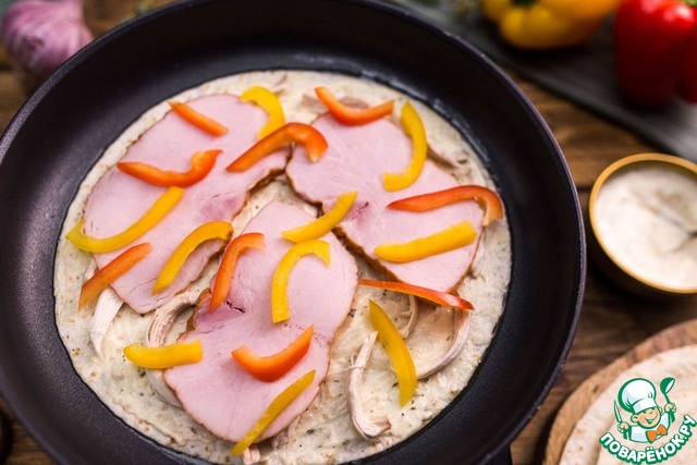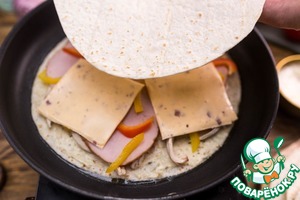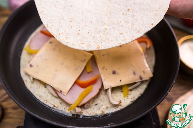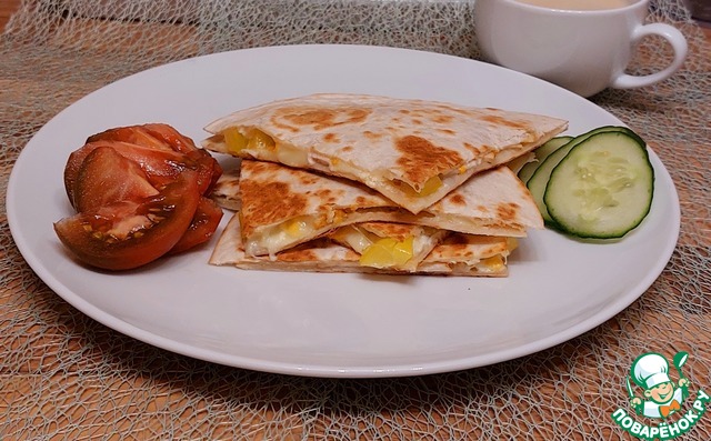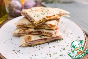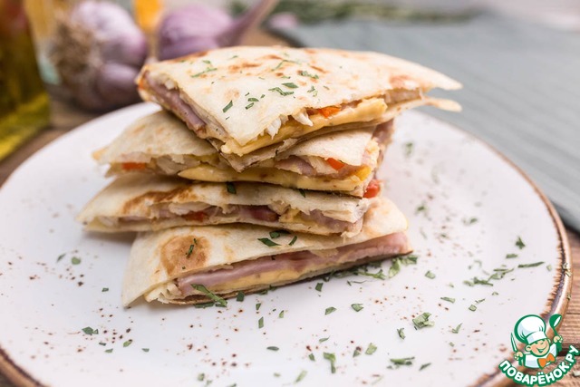 Рецепт «Сырная кесадилья с курицей и ветчиной»: