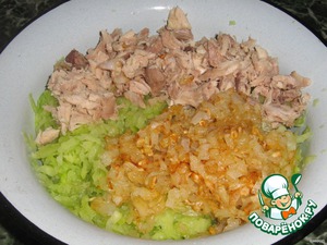 Лук мелко нарезать и обжарить до золотистого цвета в большом количестве растительного масла. Масла нужно много, т. к. оно и будет заправкой для салата.