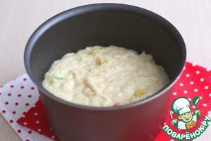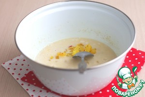 Кумкват нарезать мелкими кубиками, добавить нарезанные цукаты кумквата в яично- дрожжевую смесь, затем добавить остальные цукаты. Смесь еще раз хорошо вымешать.