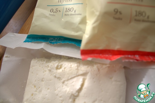 Для запеканки подойдёт любой творог, так как мы его будем взбивать. Я брала пачку обезжиренного и 2 пачки 9% творога.