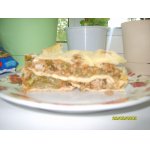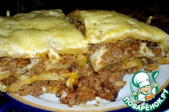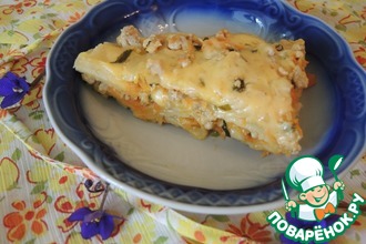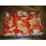 2. Затем: листы лазаньи, Болоньезе, немного Пармезана. Так чередуем.