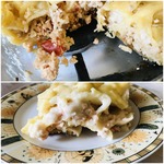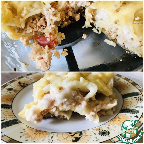 3. Последний слой: листы лазаньи, Бешамель, Пармезан.