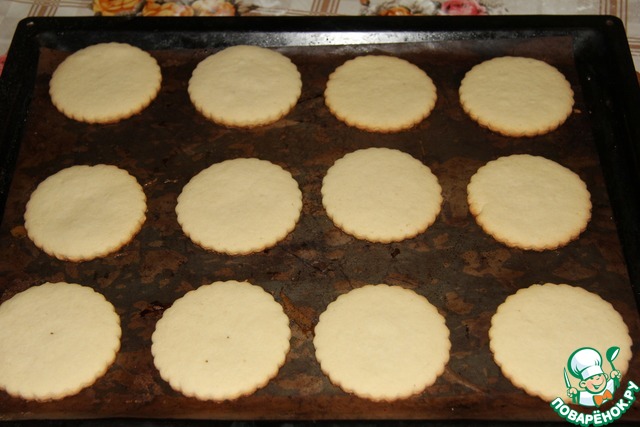 Выпекать около 15 минут при 180 градусах. Печенье не будет румяным (!), не пересушите. Лучше проверить, приподняв его, и оценить готовность по низу печенья.