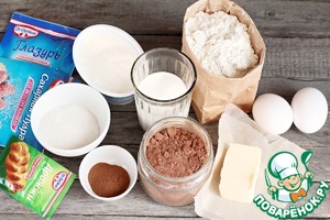 Подготовить необходимые для приготовления мраморного кулича ингредиенты. Муку пшеничную обязательно предварительно просеять, так как это позволяет избежать комочков и способствует лучшему подъему теста. Требуемое ее количество (400 - 550 г) будет зависеть от многих факторов: клейковины, географии, влажности, производителя и многих других.
