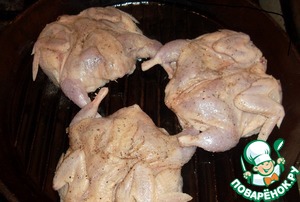 Извлекаем птичек из маринада, натираем солью и перцем слегка…