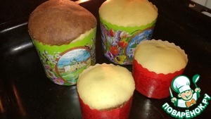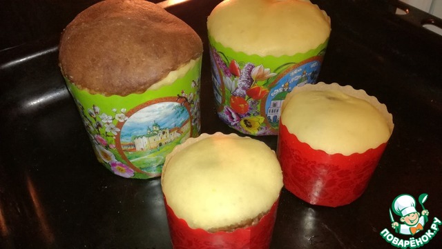 Накрыть и дать подняться в тёплом месте. С этого количества теста у меня получилось 4 кулича. Ставим в заранее разогретую духовку на 180° на 30-40 минут. Всё зависит от размера кулича. Ориентируетесь на свою духовку.
