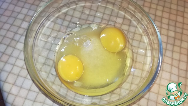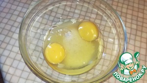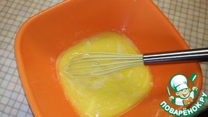 В отдельной миске соединить яйца с сахаром и слегка взбить.