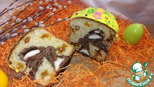 Необычный, а главное вкусный кулич с удивительными узорами, которые каждый раз получаются уникальными. Готовиться довольно быстро и не хлопотно.