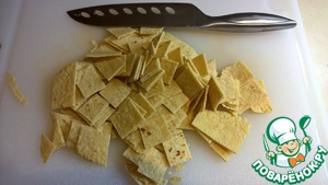 Кукурузные лепешки тортилья нарезаем кусочками 3 - 4 см