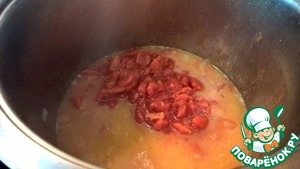 Добавляем томаты в собственном соку. Если они не нарубленные - предварительно нарезаем их