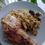 Ставим в средне-нагретую духовку и запекаем в районе 30 минут (до готовности курицы)