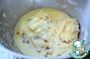 Смешать и просеять оба вида муки, оставив 1 ст. л. для обваливания изюма.