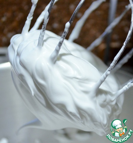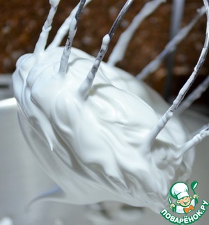вначале взбить холодные белки до стойких пиков, затем ввести по 1 ст. л. пудру, продолжая взбивать. В конце влить лимонный сок.