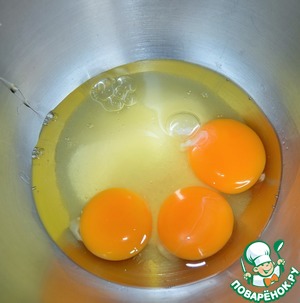 В деже комбайна или миксером взбить яйца, соль, сахар и ванильный сахар, до пышной массы.