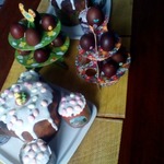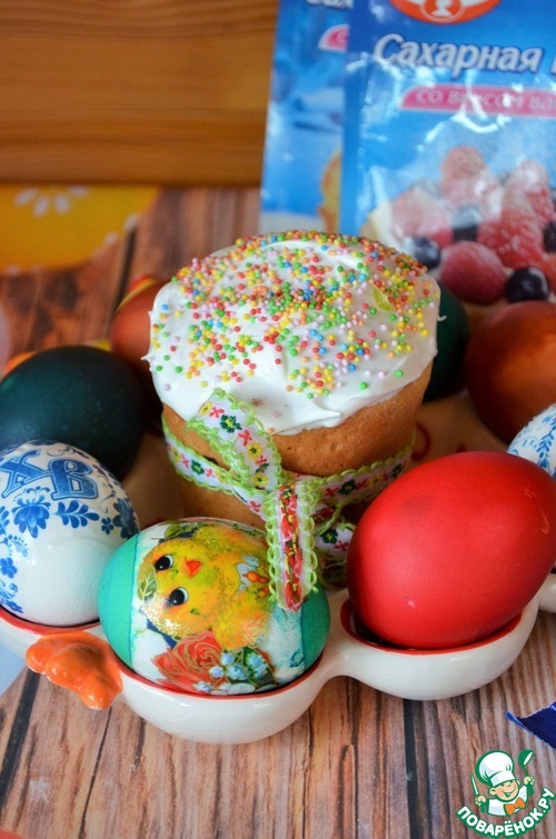 Самый большой кулич я "обожгла" горелкой, эффектно смотрится.
