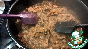 • Обжариваем мясо маленькими партиями на растительном масле до готовности на сильном огне (минуты 2 - 3 на каждой стороне - до проступания сока)