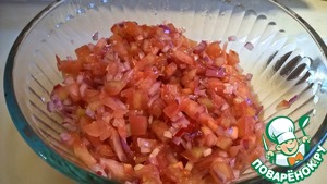• Обжариваем лук и перец на сковороде с добавлением растительного масла. Овощи должны остаться слегка хрустящими