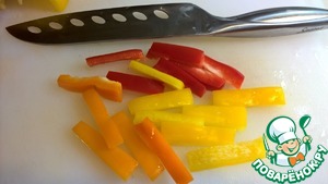 • Сладкий перец нарезаем полосками 1 х 8 см