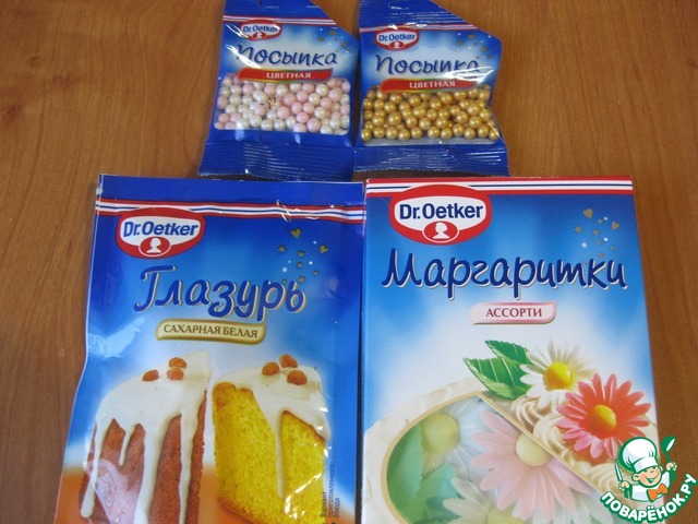 - Глазурь (Dr. Oetker) — 1 пакет.
