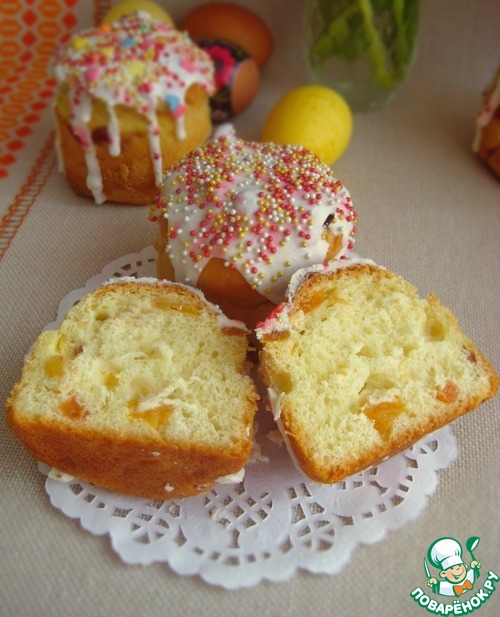 С праздником Светлой Пасхи, поварята! Предлагаю рецепт нежных, невесомых куличей! Ароматные, с яркой цитрусовой ноткой во вкусе! С курагой и изюмом!