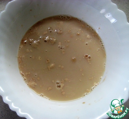 Для опары: соединить в мисочке теплую воду, сахар, сухие дрожжи и муку. Перемешать. Оставить в теплом месте на 15-20 минут.