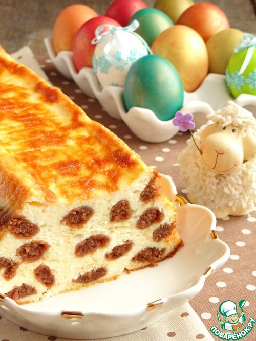 Выпекаю творожник в разогретой до 180 градусов духовке около 80 минут. Я выпекала 60 минут, как по мне, то надо было выпекать именно 80 минут, чтобы шоколадные жгутики были более запеченными. Вынимаю творожник из духовки, оставляю на 10-15 минут.