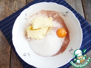 Муку просеиваю вместе с какао-порошком и разрыхлителем. -