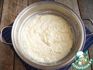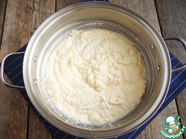 Сначала хорошо перемешиваю массу, потом измельчаю крупинки творога с помощью блендера. Масса получается более однородная и нежная.