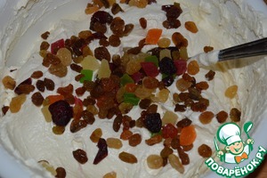 Творог дважды протереть через сито и добавить в сливочную смесь. Хорошо перемешать.