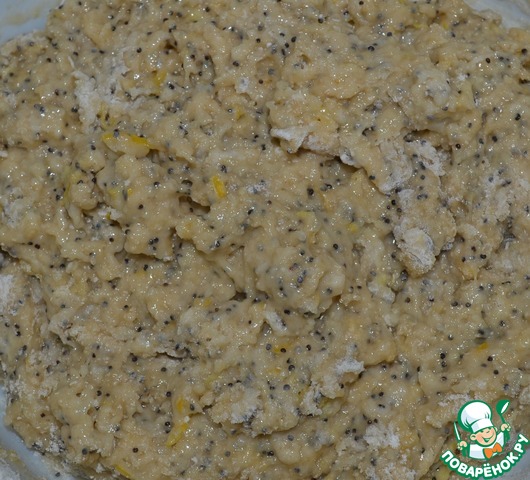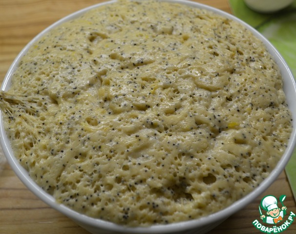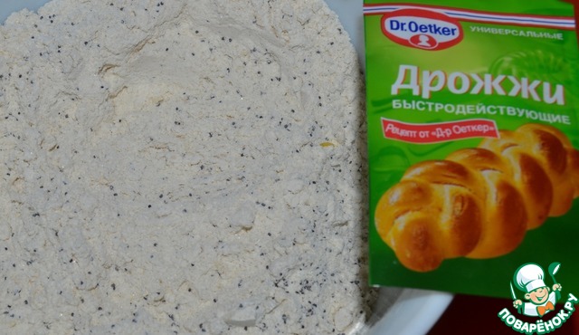 Просеять муку. Добавить сахар, соль, дрожжи, цедру лимона и мак. Все перемешать.