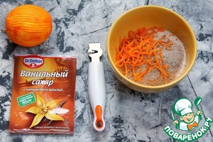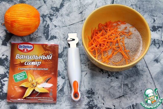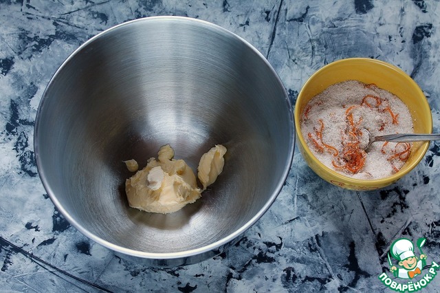 ТЕСТО:В чашу с сахаром и ванильным сахаром добавить цедру и растереть.