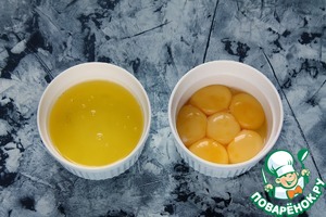 Сливочное масло (комнатной температуры) взбить с апельсиновым сахаром, ввести по одному все желтки.