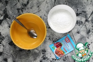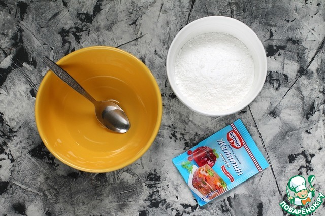 ГЛАЗУРЬ:в 30 мл воды добавить 3 гр желатина и оставить набухнуть. Набухший желатин прогреть (не кипятить!), до растворения. Добавить сахарную пудру и взбивать миксером до нужной консистенции, в конце можно добавить 1 ч. л. лимонного сока.
