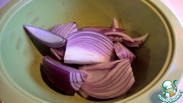 Нарезаем красный лук дольками