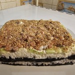 • Разрежьте на порционные кусочки (нарезать торт нужно очень острым ножом, смочив его под струей воды и, при необходимости, протирая от прилипших зерен риса).