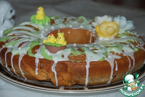 Приготовьте глазурь по инструкции на упаковке. Я сначала приготовила 1 пакет, потом поняла, что мало - кулич большим получается. Сбегала, купила ещё пакетик, но про фото уже не вспомнила. Кулинарные подвиги дали о себе знать... В общем, украшайте кулич. Он может стать королём пасхального стола.