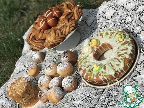 Оригинальный по форме кулич - кольцо-рулет. Я обожаю орехи в выпечке, но в куличах этого года не использовала. А тут отвела душу! Нам очень понравилось. И глазурь (здесь Dr.Oetker) использовать обязательно! Она делает кулич мягче, ароматнее и наряднее! В рецепте ингредиенты указаны в граммах. Это не опечатка. Я так и делала.
