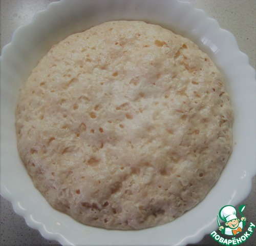 Опара увеличилась в объеме, начинаем замешивать тесто.