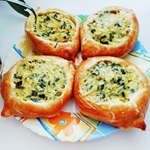 Выпекайте при 180° до золотистой корочки, примерно 25-30 минут. В середине процесса выпечки смажьте пирожки желтком.
