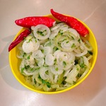 4. Отправляем лук и нарезанную зелень в маринад. Хорошо перемешиваем, накрываем миску пищевой пленкой и ставим в холодильник минут на 20-30.