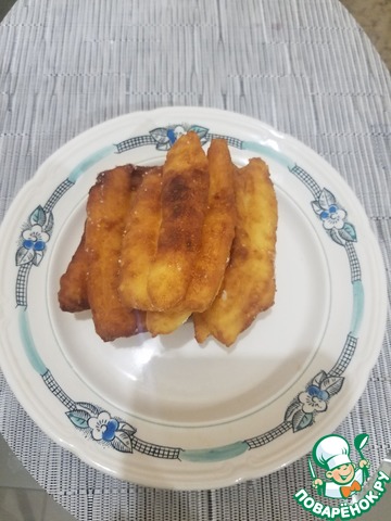 При жарке, выкладывать полоски в масло лицевой стороной вниз