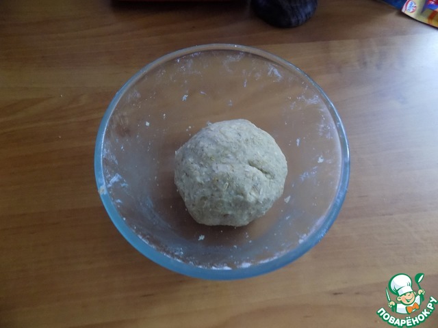 Перетираем руками в крошку. Если тесто слишком рассыпчатое, то нужно добавить ещё немного масла. Тесто податливое, к рукам не пристаёт и я скатала его в шар.