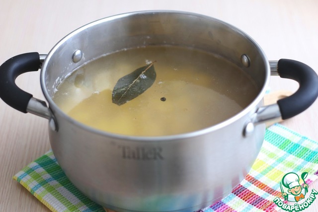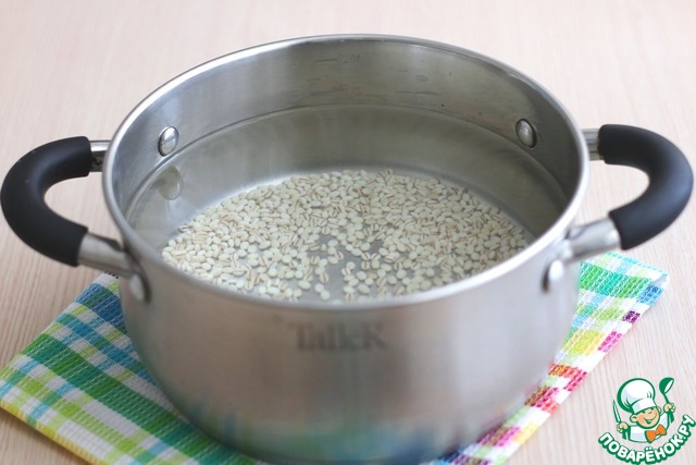 Перловую крупу (2 ст. ложки) замочить в холодной воде на 1-1,5 часа. Затем промыть в нескольких водах.