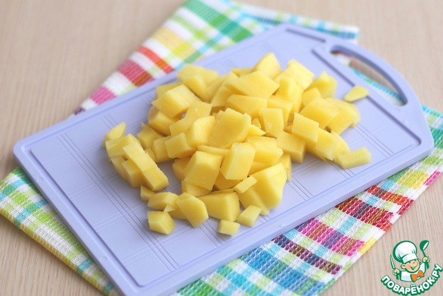 Картофель (2 шт. некрупного картофеля) нарезать кубиками.