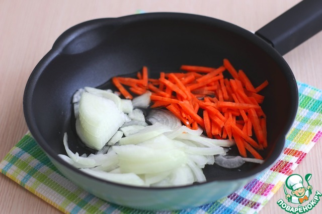 Морковь нашинковать соломкой, нашинковать полукольцами репчатый лук.