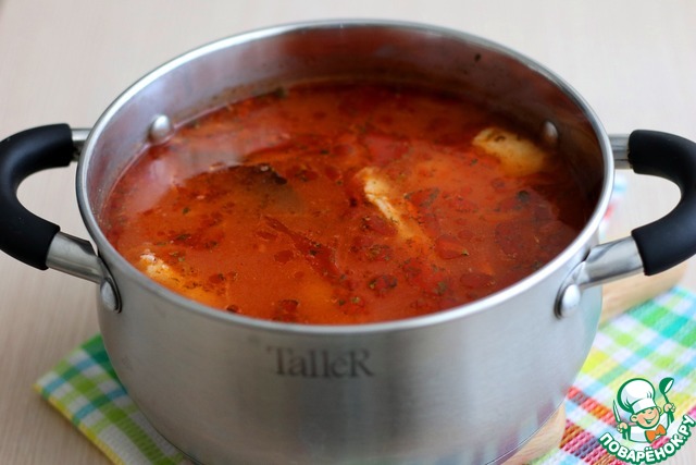 Рецепт «Томатный суп с треской и перловкой»: