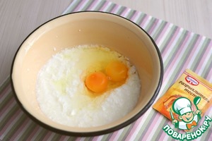 В миску добавить простоквашу, добавить соль (1 щеп.), добавить яйца (2 шт.)