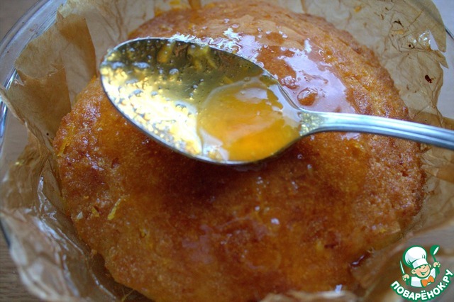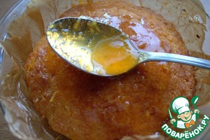 Пропитываем загустевшим соусом всю поверхность кекса.