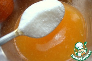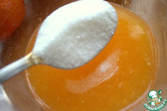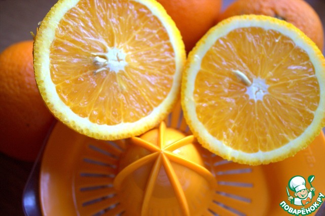 Пока кекс выпекается, приготовим соус. С апельсинов выжать сок.