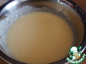 Яйца взбить венчиком с сахаром, добавить масло, размешать.
